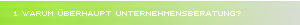 Kleine und mittelständische Unternehmen sind mit der Wahl oftmals überfordert oder lassen es gleich sein. Mit Unternehmensberatungs- Gesellschaften wird in der Regel verbunden, daß sie lange theoretische Konzepte erstellen, die man kaum verstehen kann und die man erst recht nicht praxisnah umsetzen kann. Und dafür noch Geld ausgeben?
